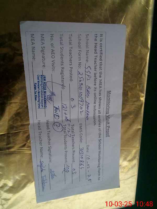 | Certified that this School was Inspected by the Undersigned MEA/DMO Today and the Information Stated Above is as Per Record. | |||||