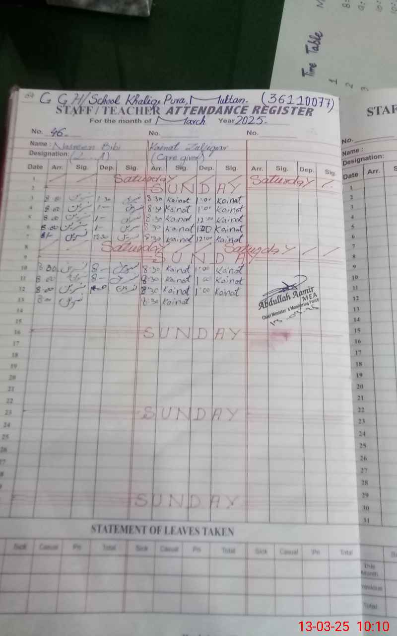 | Name: Sh**** Ra**** Designation: (School Headmaster's/Headmistress's) HEADMASTER Phone/Cell Number: 03**** |