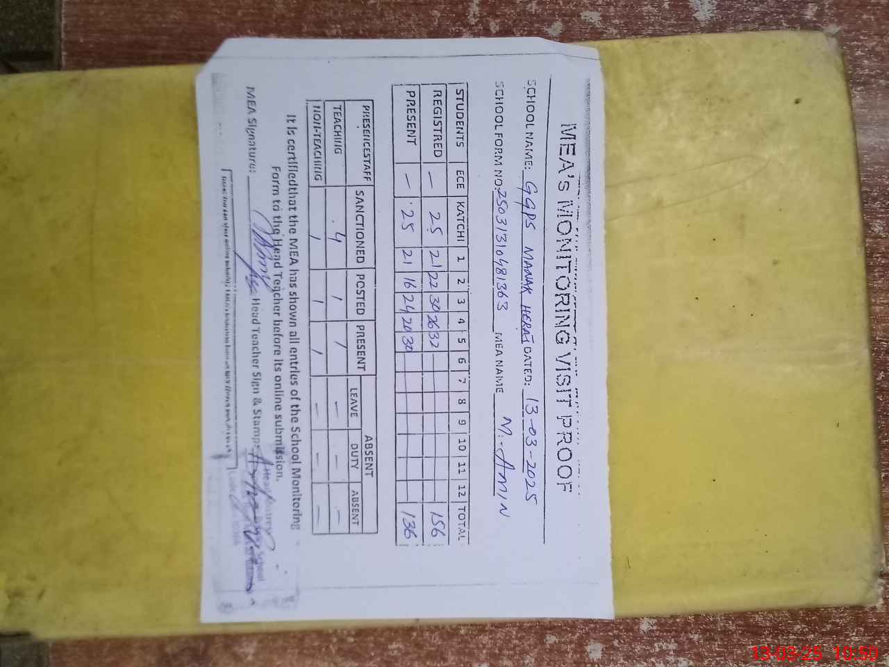 | EMIS Code: 36430366 | Name of School: GGPS MANAK HERAJ, TULAMBA | |||