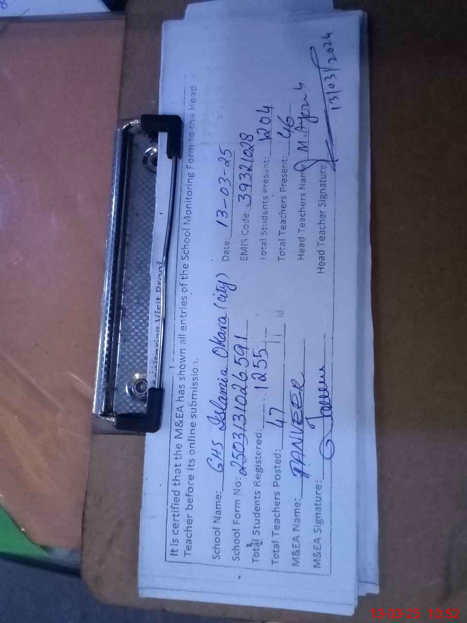 | EMIS Code: 39321028 | Name of School: GHS ISLAMIA OKARA CITY | |||