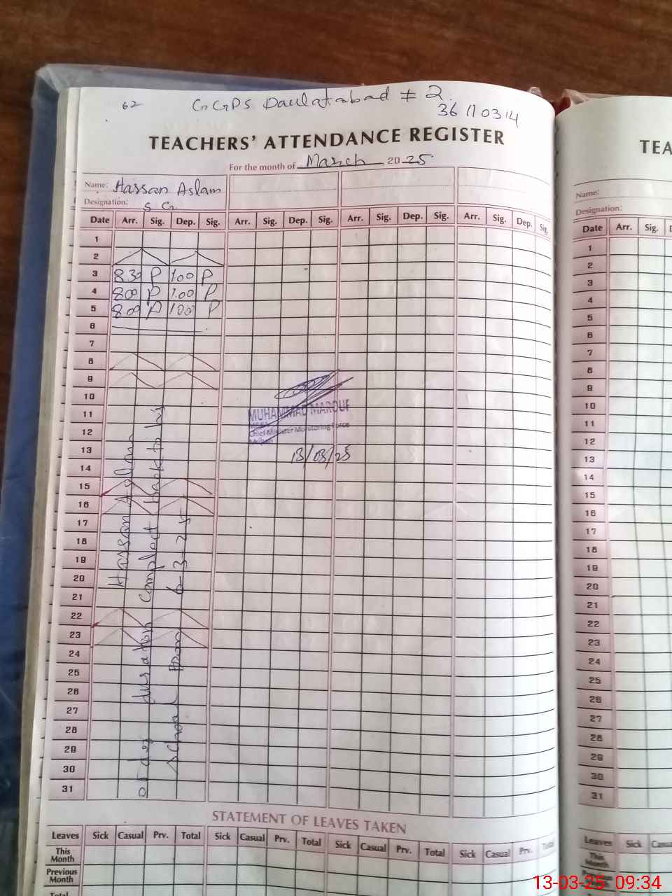 | Monitoring Date: 13-03-2025 | Start Time: 13-03-2025 09:01 AM | End Time: 13-03-2025 09:35 AM | Name of MEA: Mu**** Ma**** | |