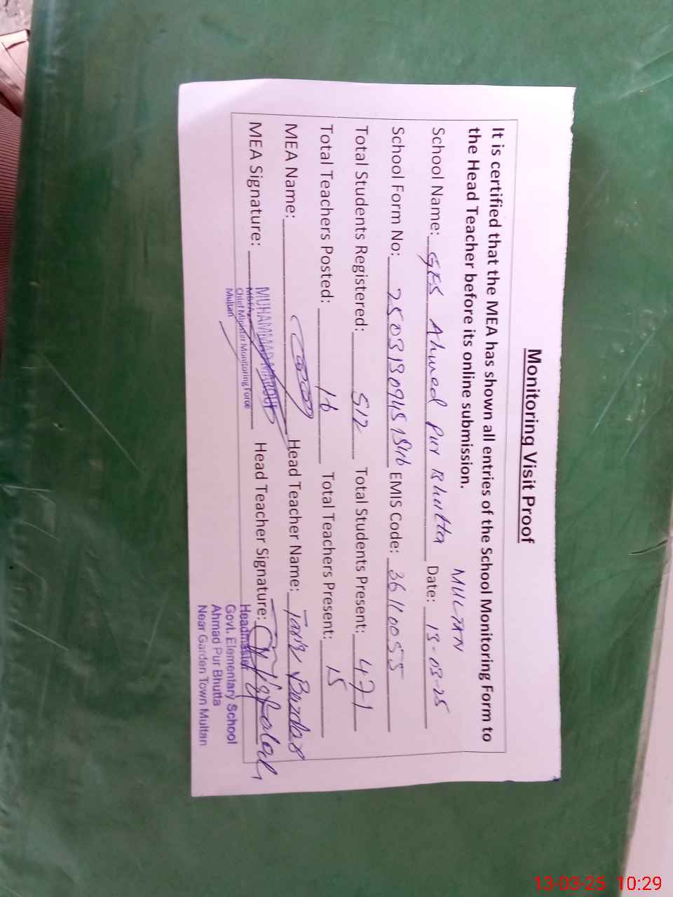 | EMIS Code: 36110055 | Name of School: GES AHMED PUR BHUTTA CANTT. AREA | |||