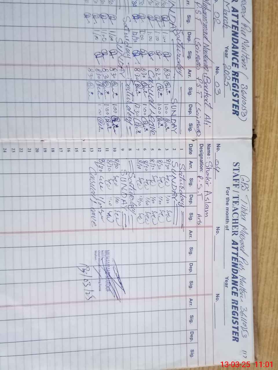 | CNIC | Full Name | Designation | R/C | Absence During Last Calender Month |