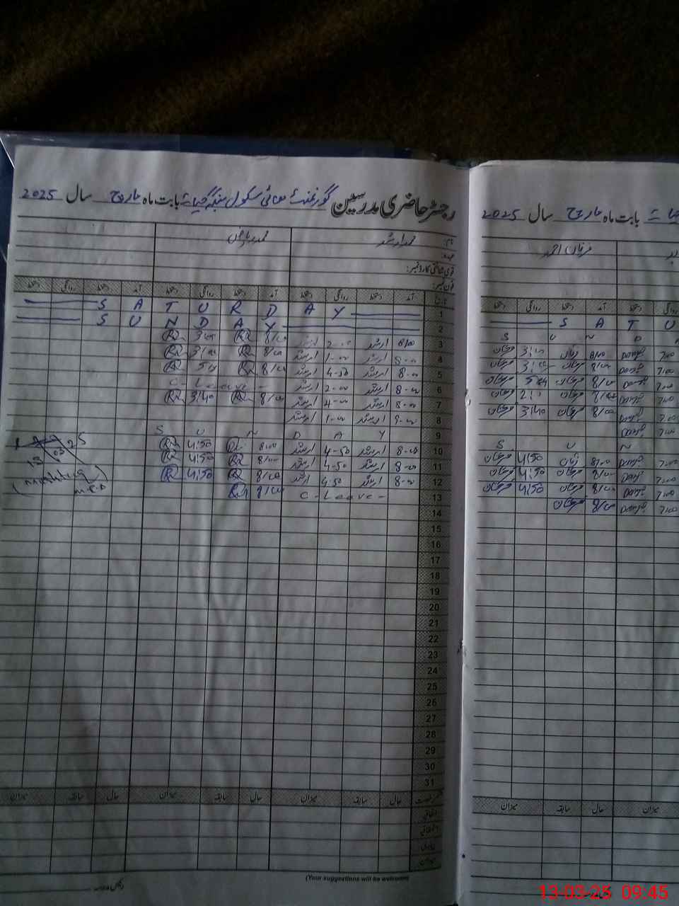 | 36**** | Mu**** Ta**** | SST | Regular | 0 | 0 | 0 | 0 | 0 | 0 | 0 | 0 | 0 | Exam Duty |