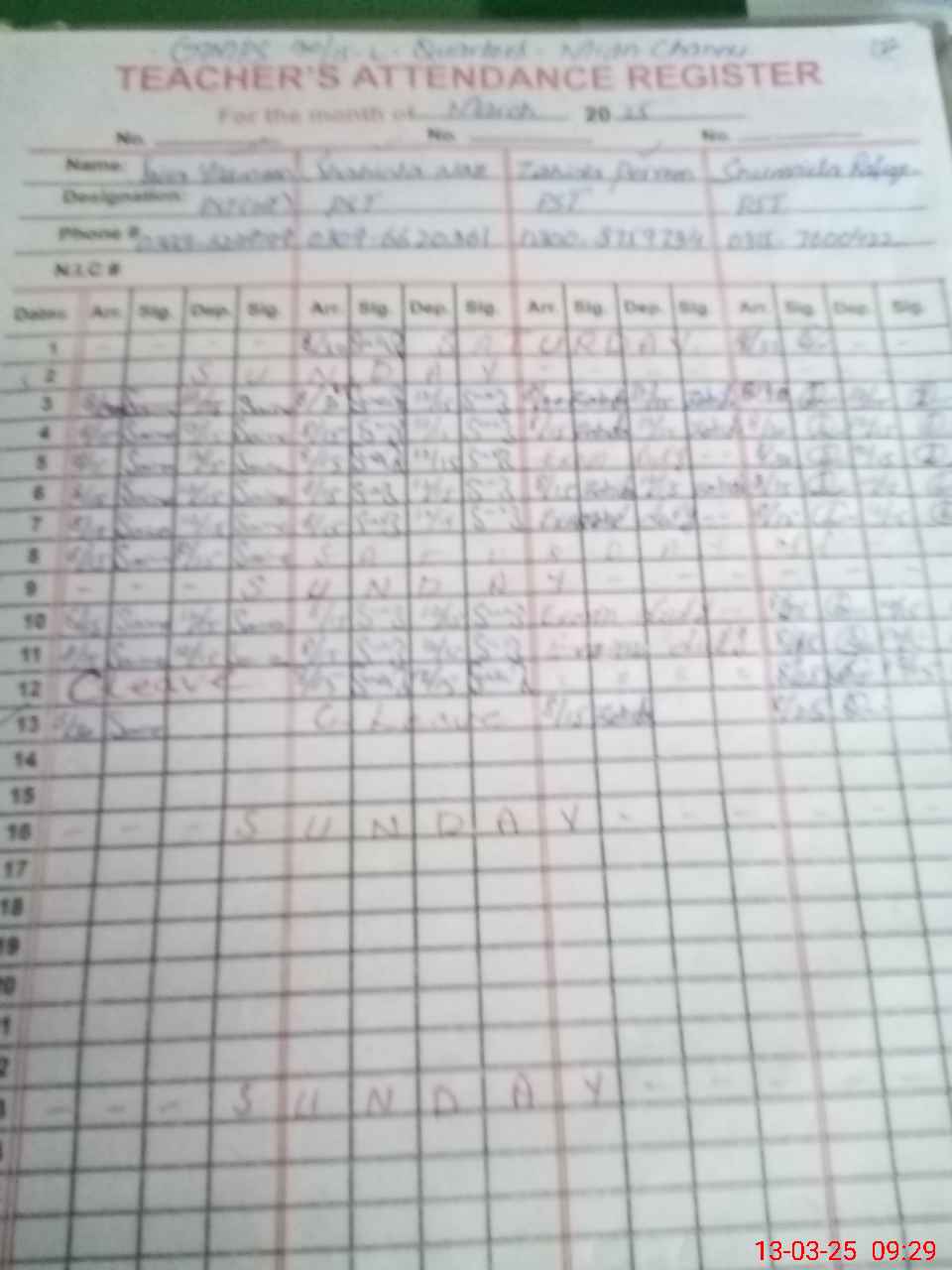 | Name: SA**** YA**** Designation: (School Headmaster's/Headmistress's) PST Phone/Cell Number: 03**** |