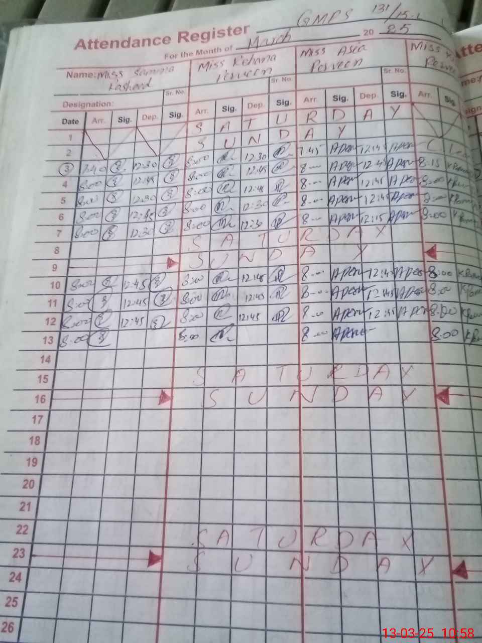 | 36**** | Na**** Ma**** | PST | Regular | 5 | 0 | 0 | 0 | 0 | 0 | 0 | 0 | 5 | Casual |