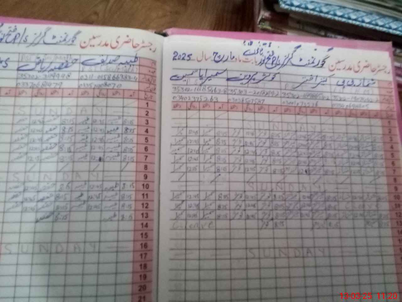 | CNIC | Full Name | Designation | R/C | Absence During Last Calender Month |