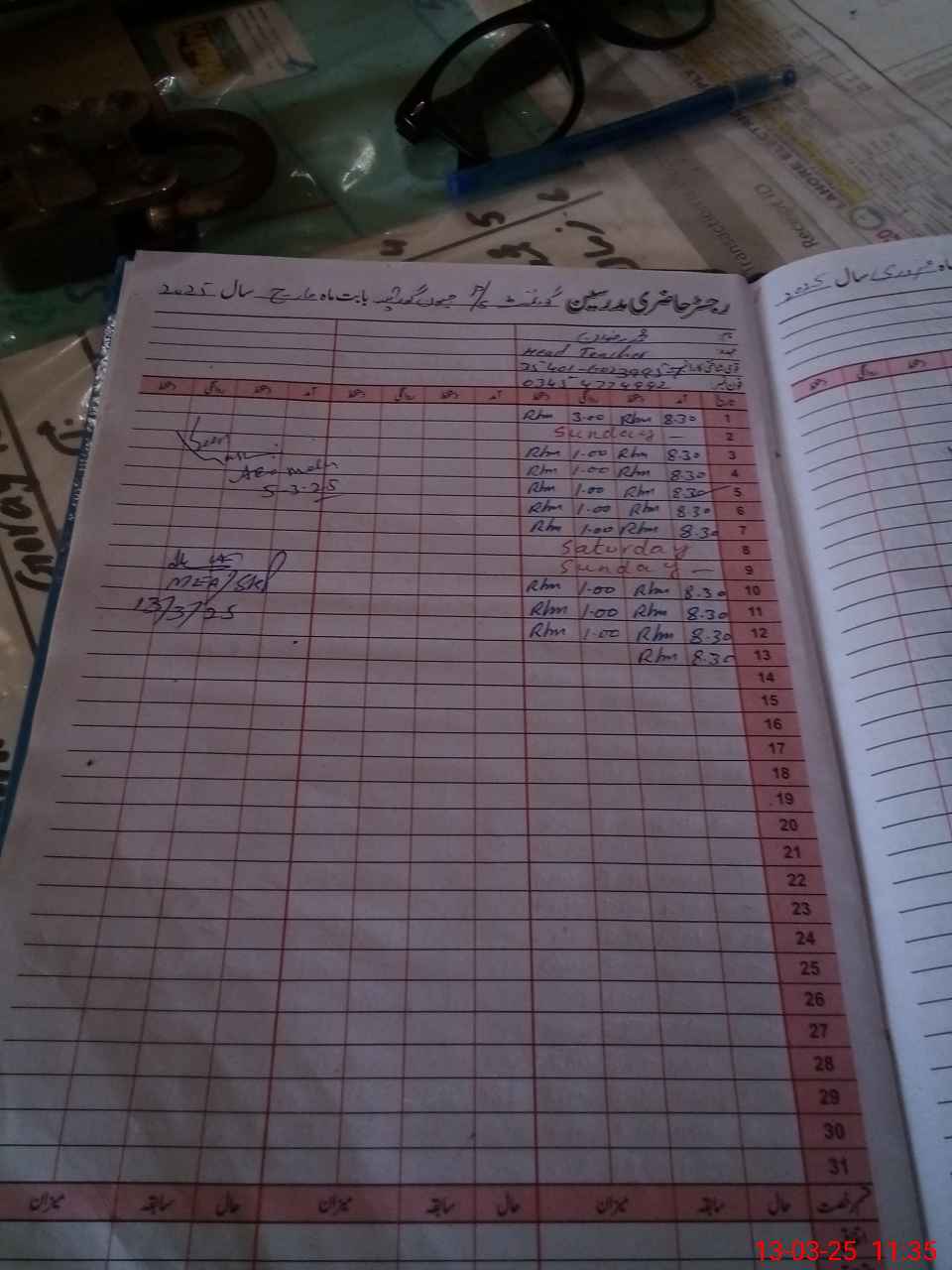 | Name: MU**** RI**** Designation: (School Headmaster's/Headmistress's) PST Phone/Cell Number: 03**** |