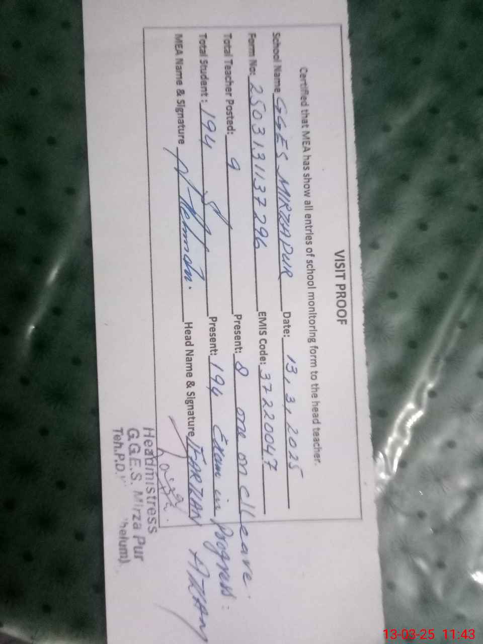| EMIS Code: 37220047 | Name of School: GGES MIRZA PUR | |||