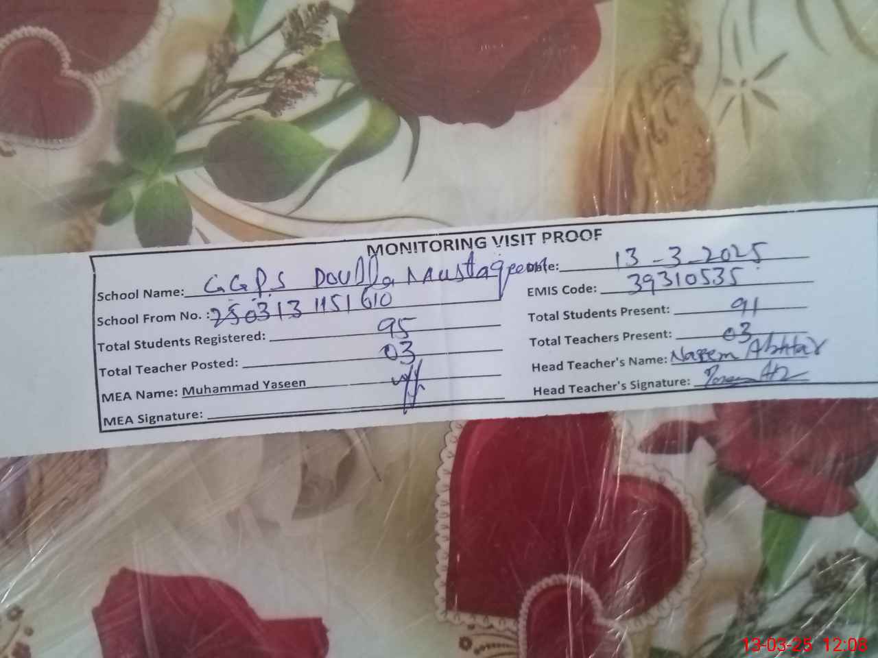 | EMIS Code: 39310535 | Name of School: GGPS DHOLLA MUSTAQEEM | |||