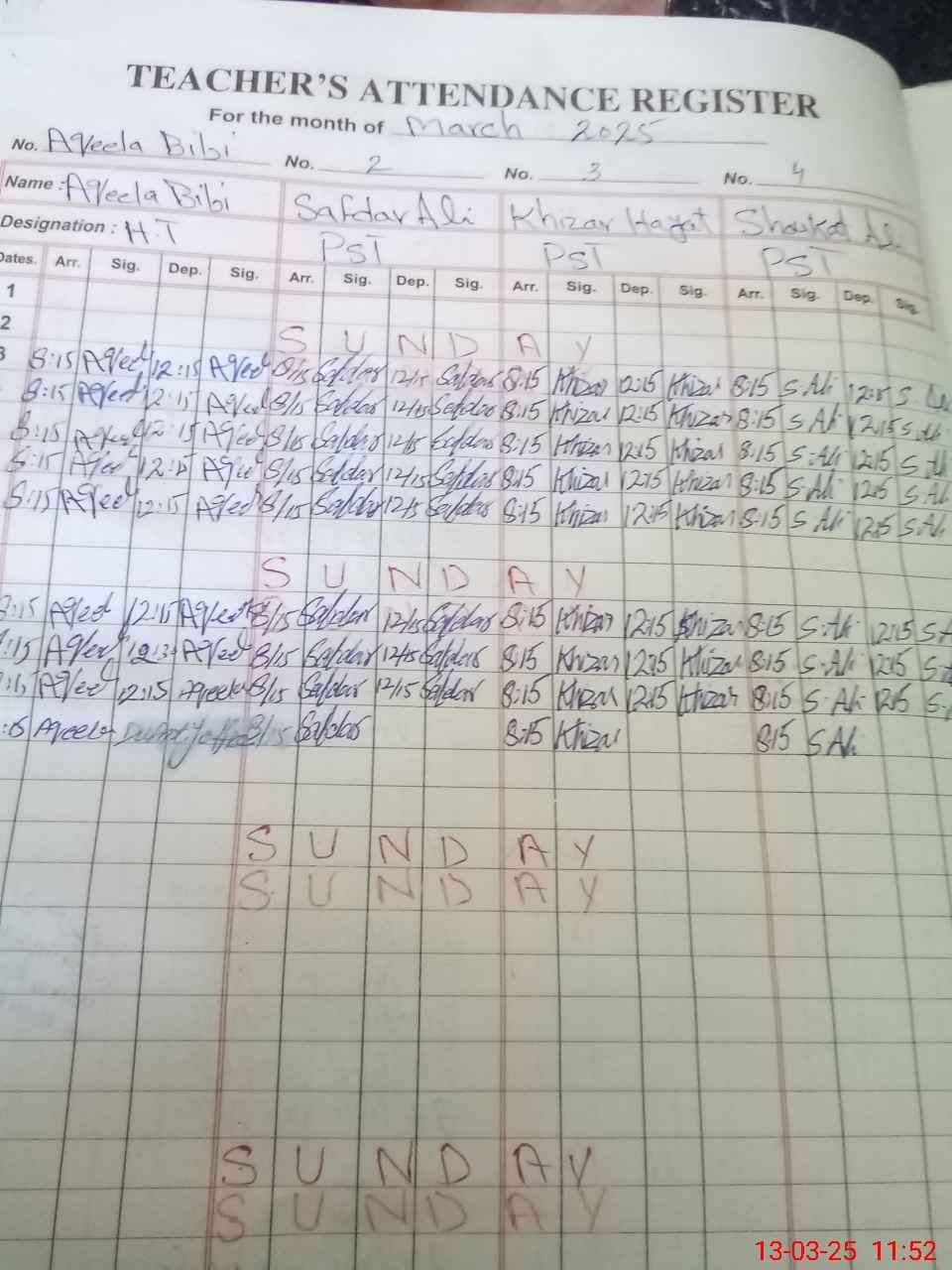 | Name: Aq**** Bi**** Designation: (School Headmaster's/Headmistress's) PST Phone/Cell Number: 03**** |