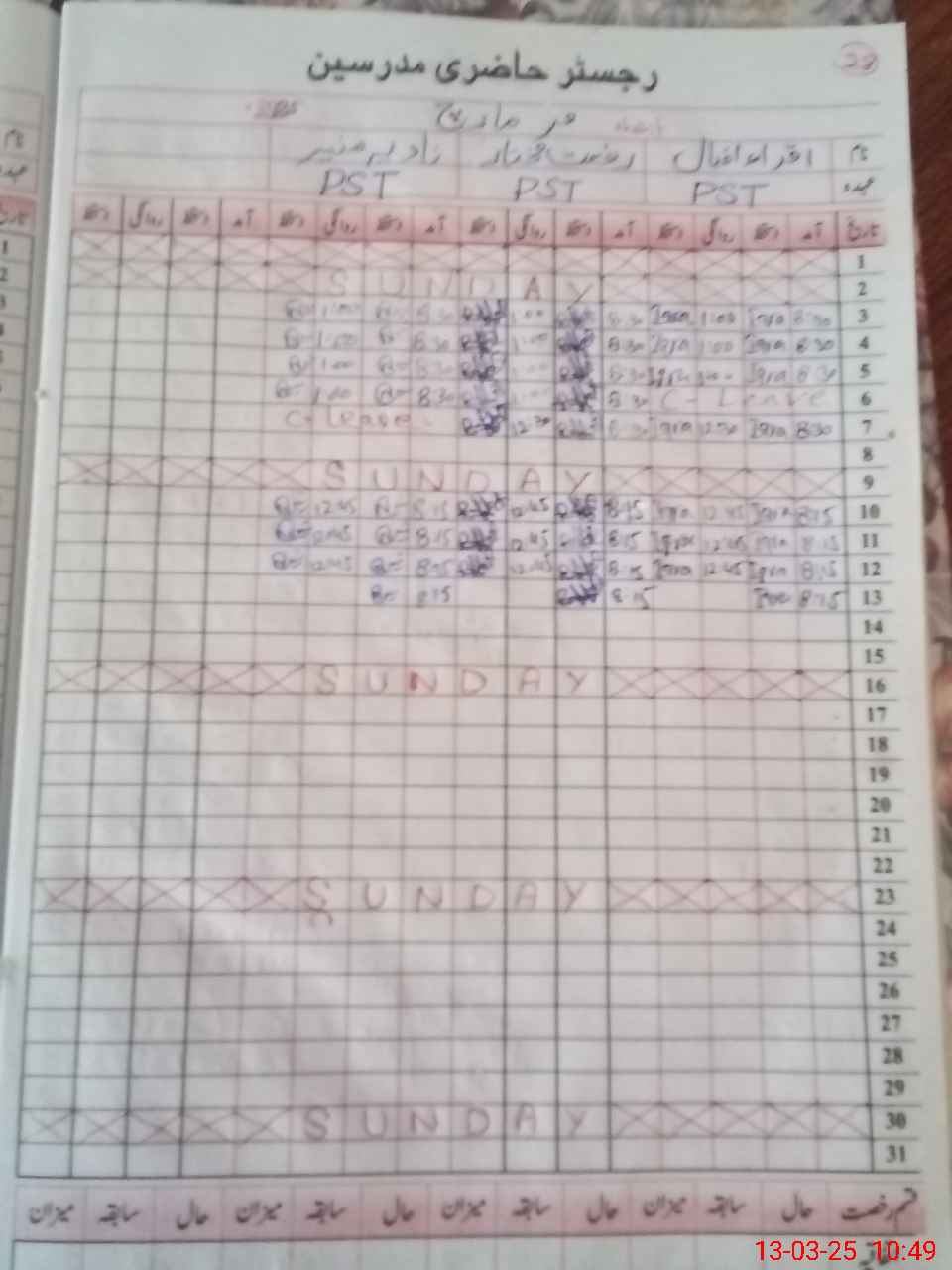 | CNIC | Full Name | Designation | R/C | Absence During Last Calender Month |