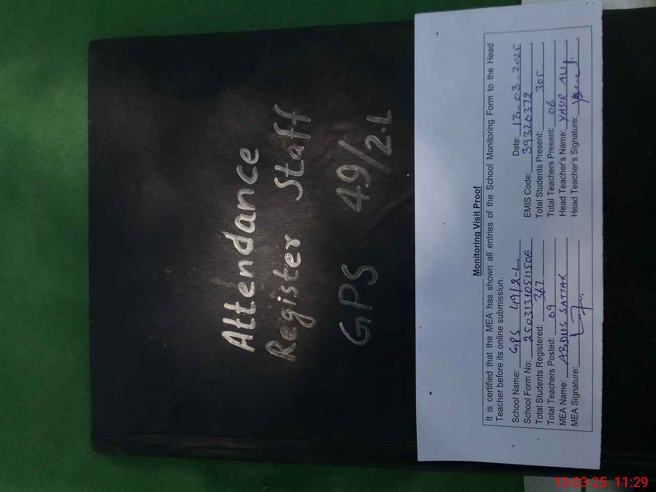 | Attendance Register | Head Teacher | MEA with School | Visit Proof |