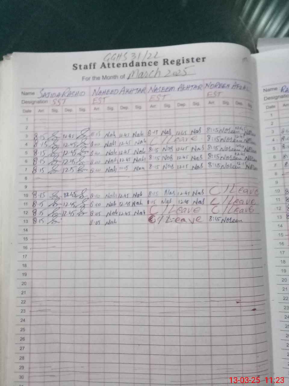 | CNIC | Full Name | Designation | R/C | Absence During Last Calender Month |
