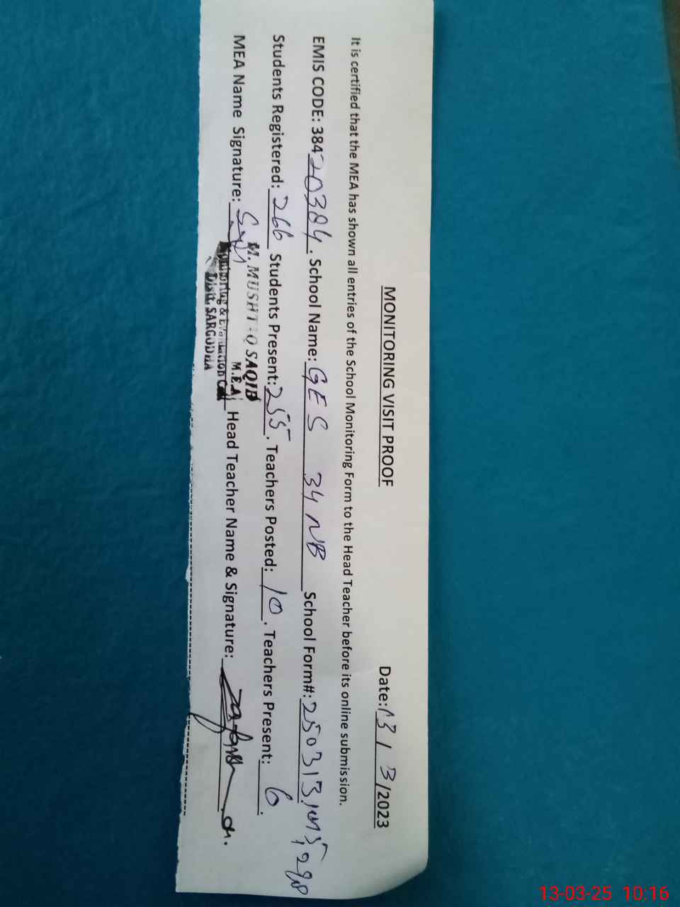 | EMIS Code: 38420384 | Name of School: GES CHAK NO.34 NB | |||