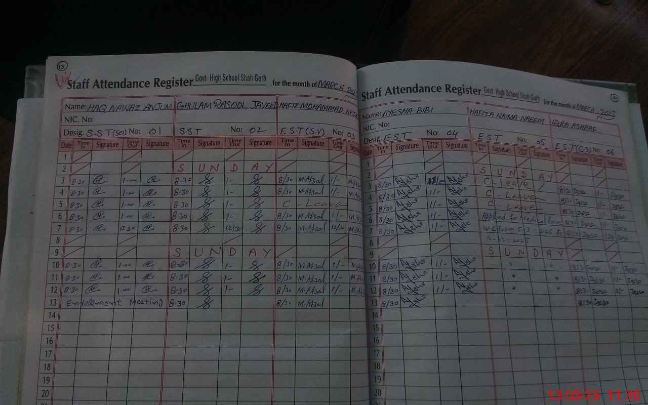 | CNIC | Full Name | Designation | R/C | Absence During Last Calender Month |