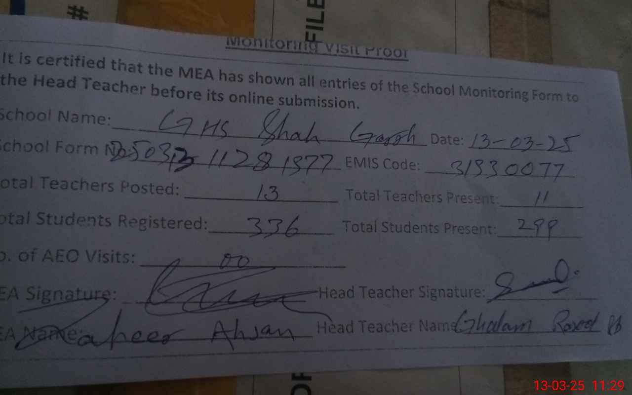 | EMIS Code: 31330077 | Name of School: GHS SHAH GARH | |||