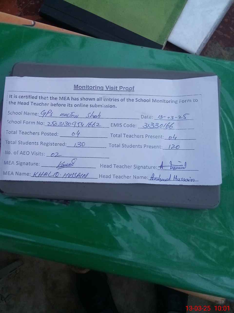 | EMIS Code: 31330166 | Name of School: GPS MASTAN SHAH | |||