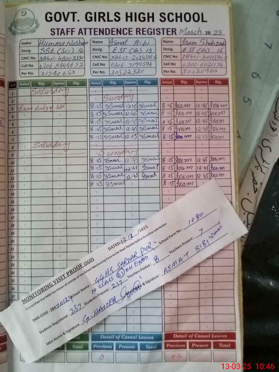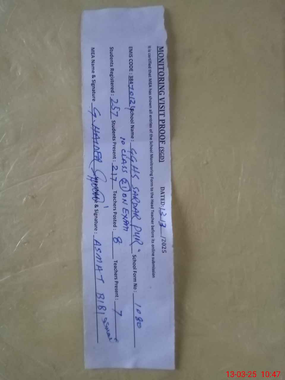 | EMIS Code: 38470124 | Name of School: GGHS SARDAR PUR NOON | |||