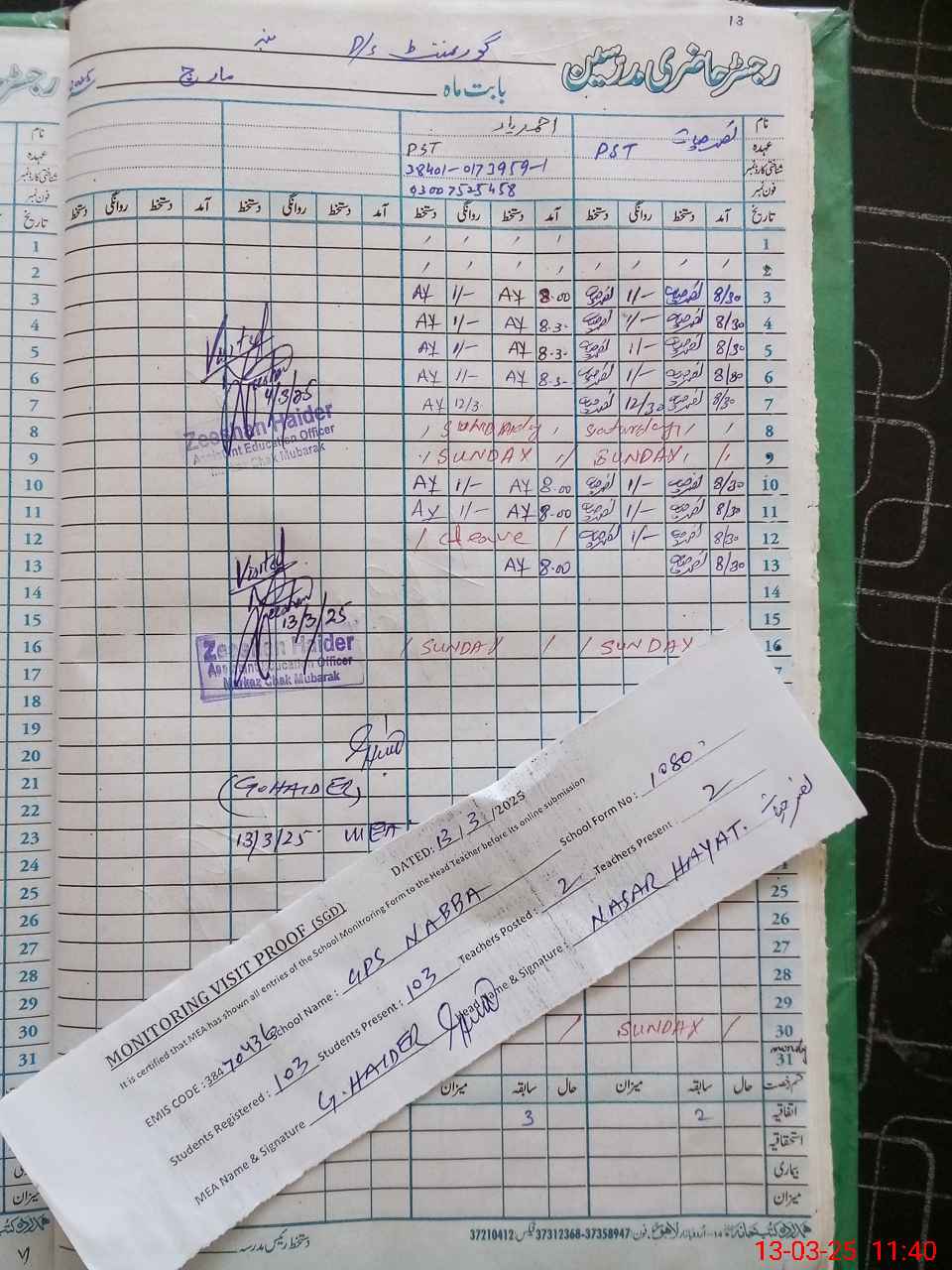 | Name: NA**** HA**** Designation: (School Headmaster's/Headmistress's) PST Phone/Cell Number: 03**** |