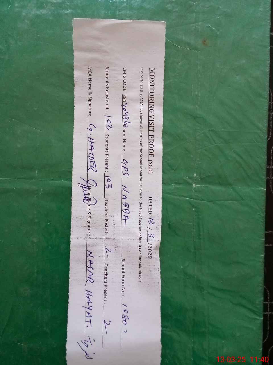 | EMIS Code: 38470436 | Name of School: GPS NABBA | |||