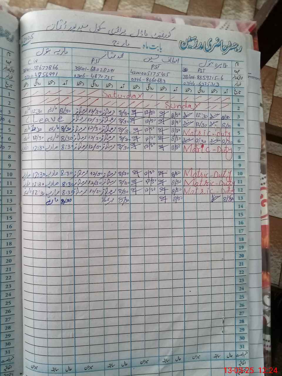 | Name: Ta**** Ba**** Designation: (School Headmaster's/Headmistress's) PST Phone/Cell Number: 03**** |