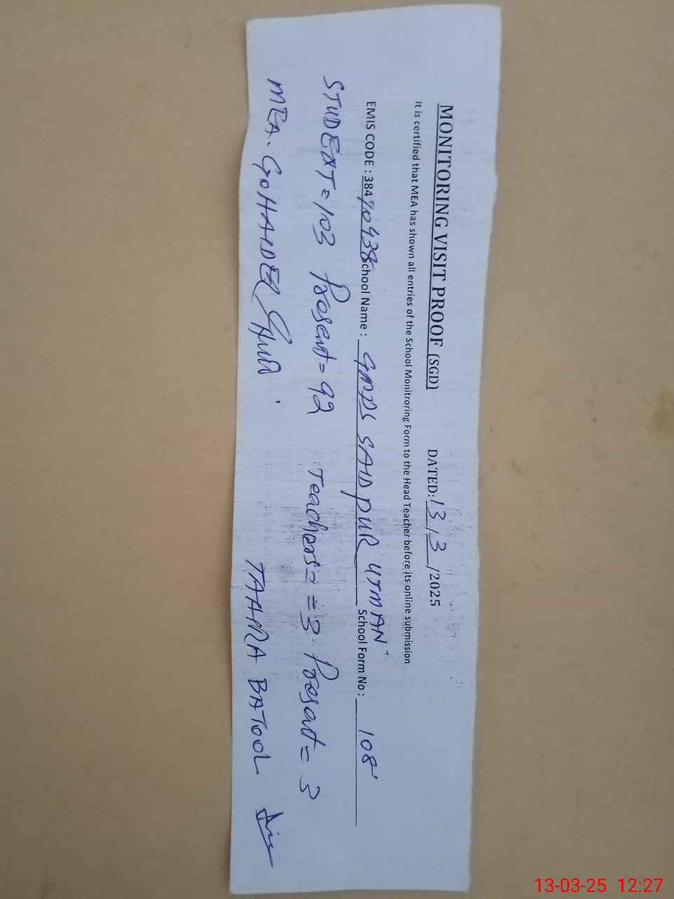 | EMIS Code: 38470438 | Name of School: GMPS SAID PUR UTMAN | |||