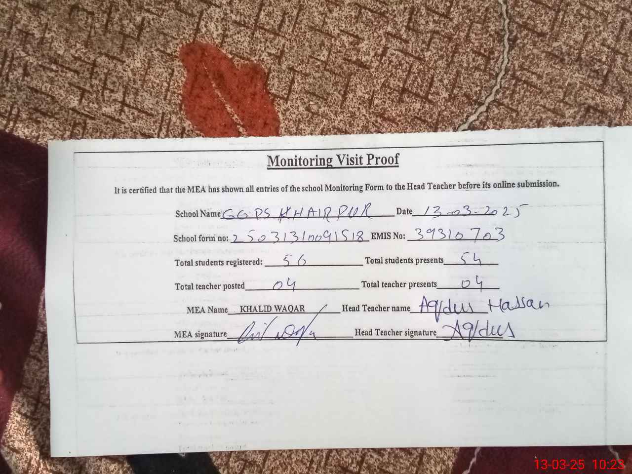 | EMIS Code: 39310703 | Name of School: GGPS KHAIR PUR | |||