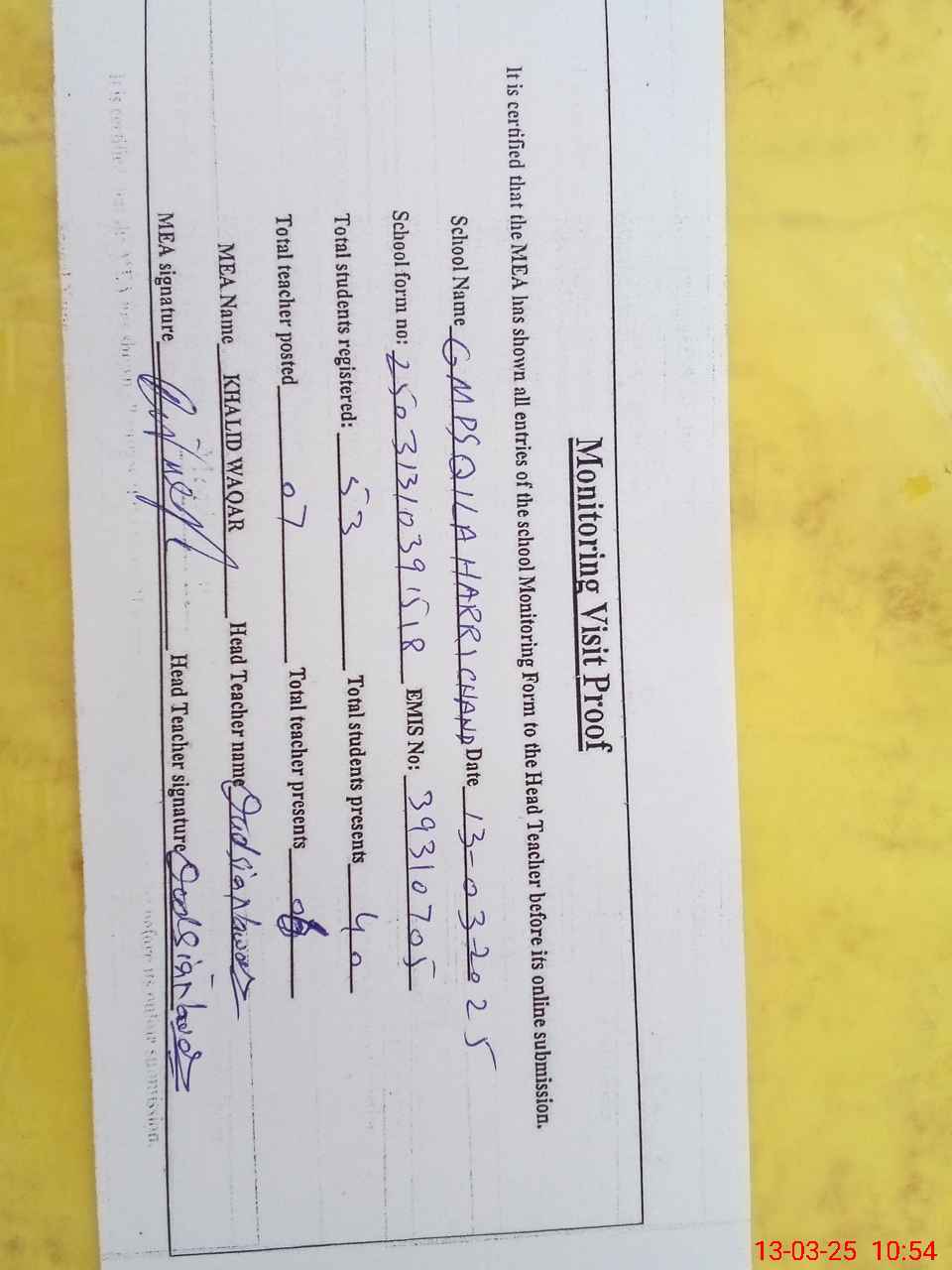 | EMIS Code: 39310705 | Name of School: GMPS QILA HARRI CHAND | |||
