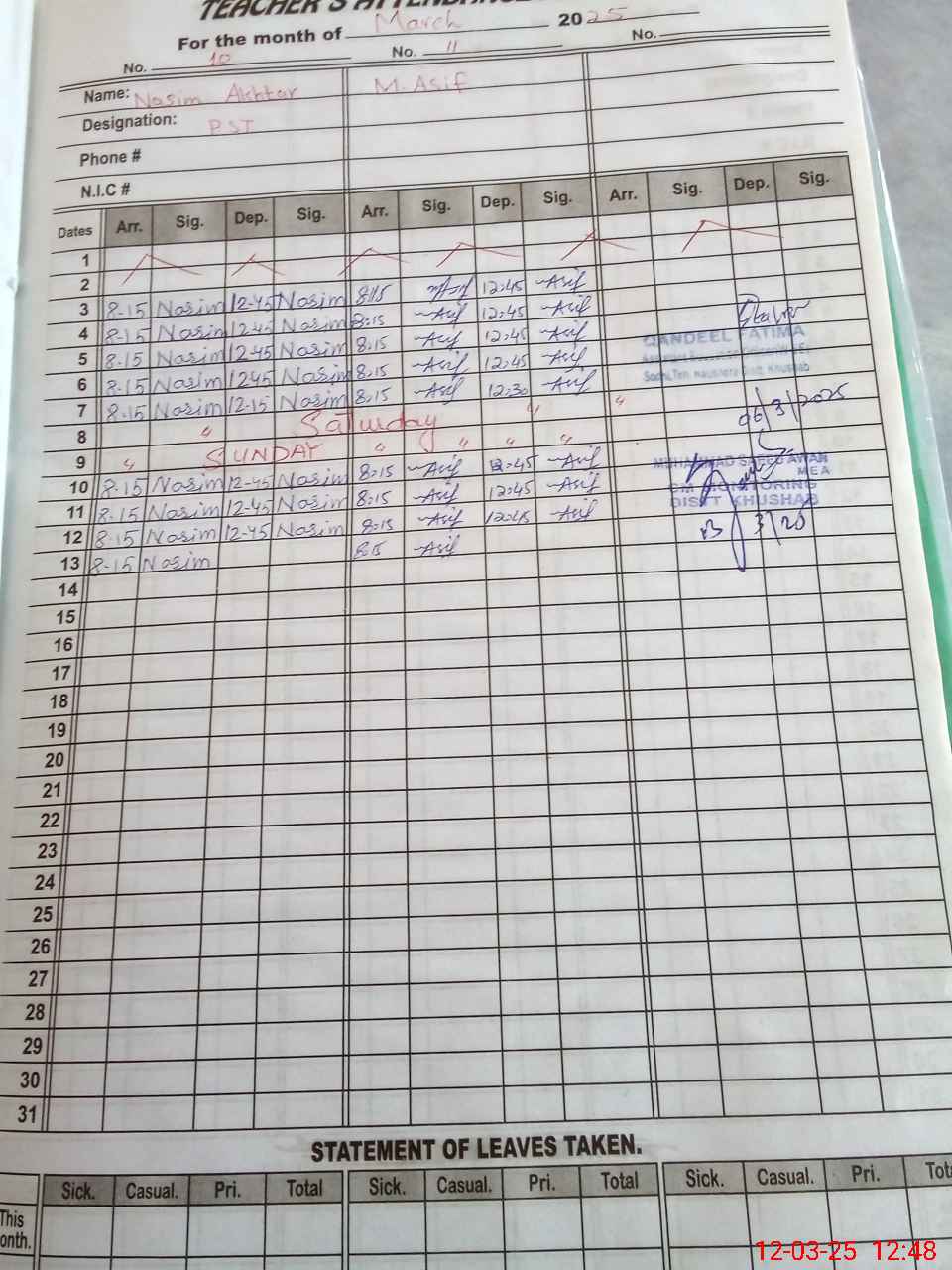 | Name: MR**** AQ**** RI**** Designation: (School Headmaster's/Headmistress's) SSE ( BIO) Phone/Cell Number: 03**** |