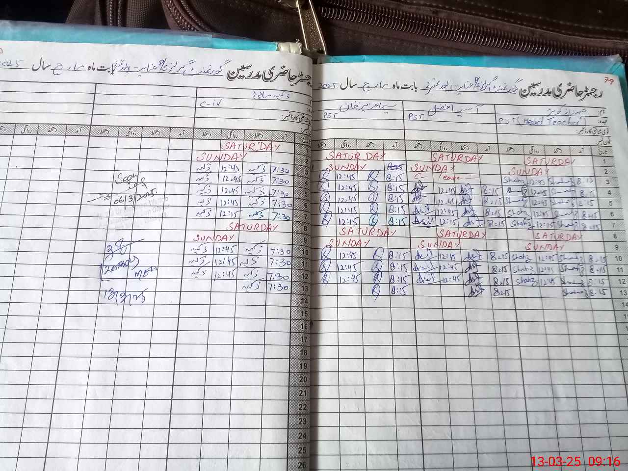 | CNIC | Full Name | Designation | R/C | Absence During Last Calender Month |