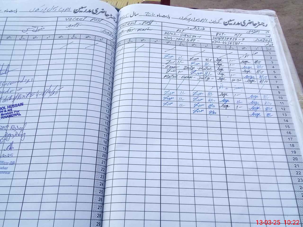 | Name: As**** Al**** Designation: (School Headmaster's/Headmistress's) PST Phone/Cell Number: 03**** |