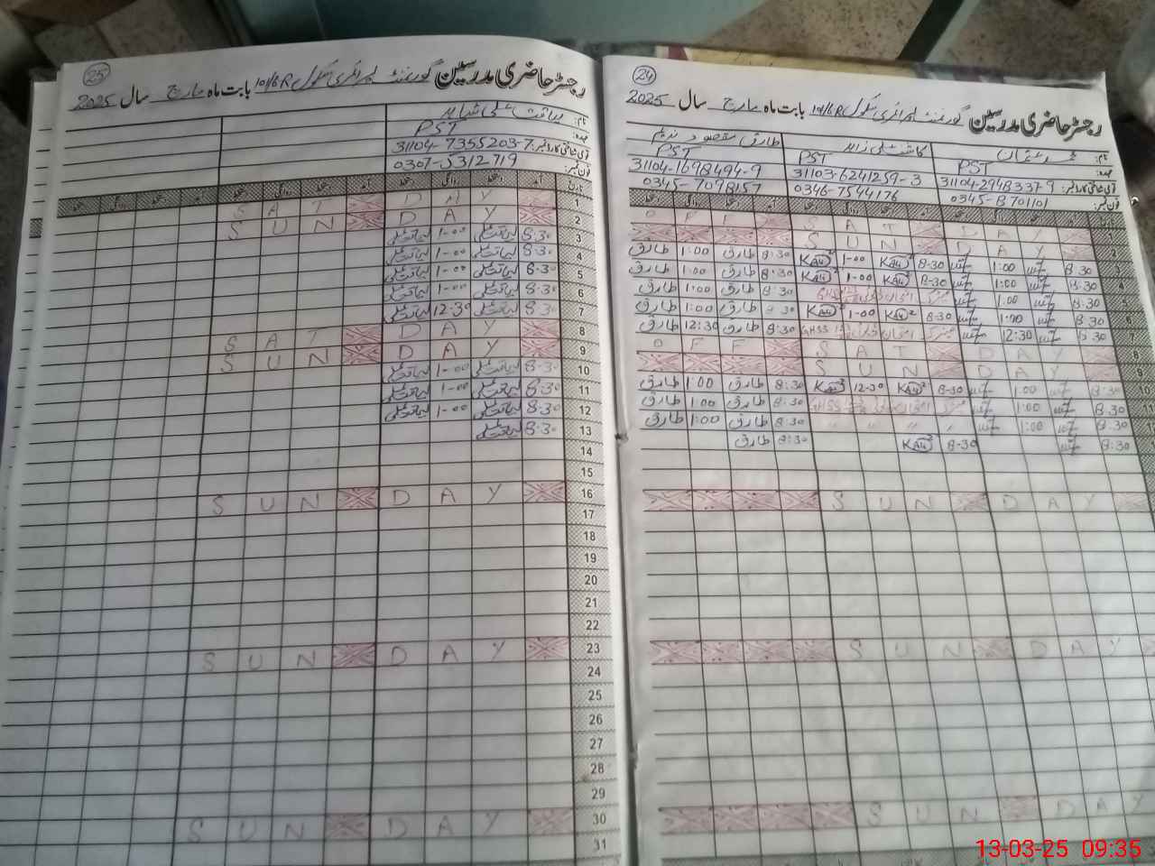 | CNIC | Full Name | Designation | R/C | Absence During Last Calender Month |
