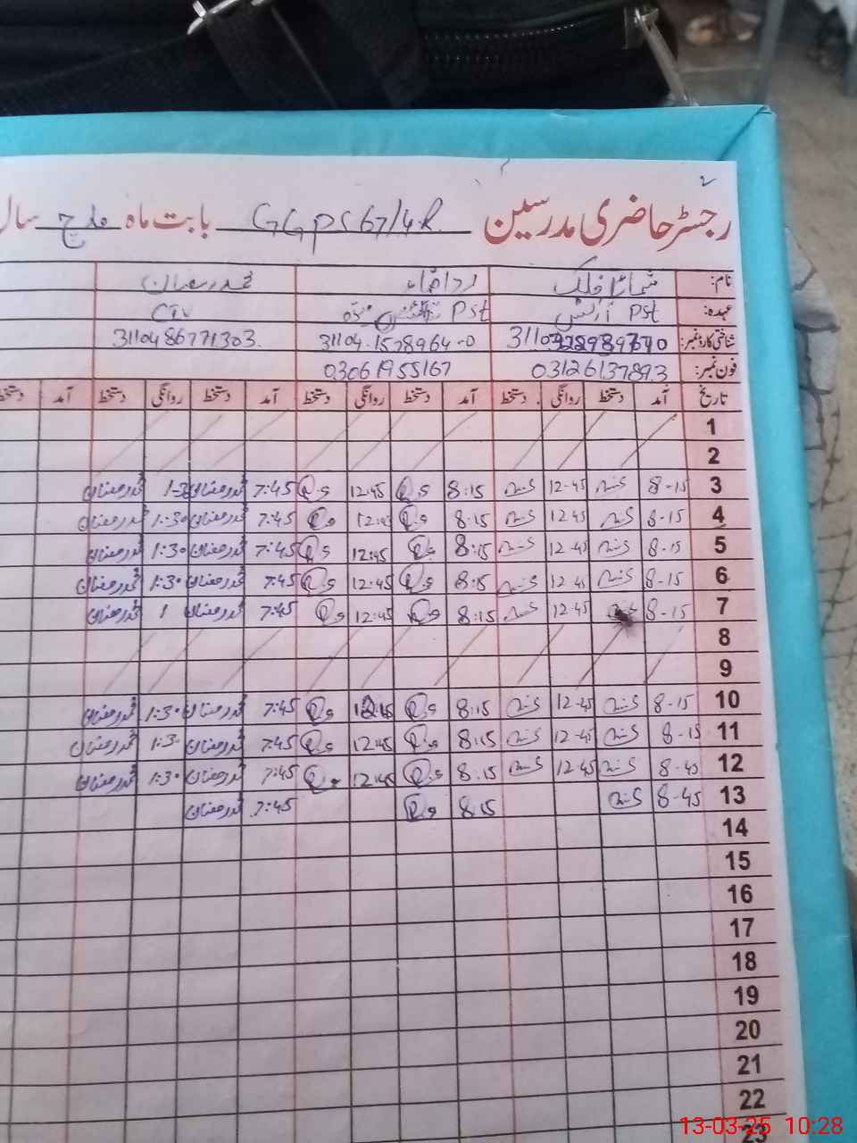 | Name: Dh**** Fa**** Designation: (School Headmaster's/Headmistress's) PST Phone/Cell Number: 03**** |