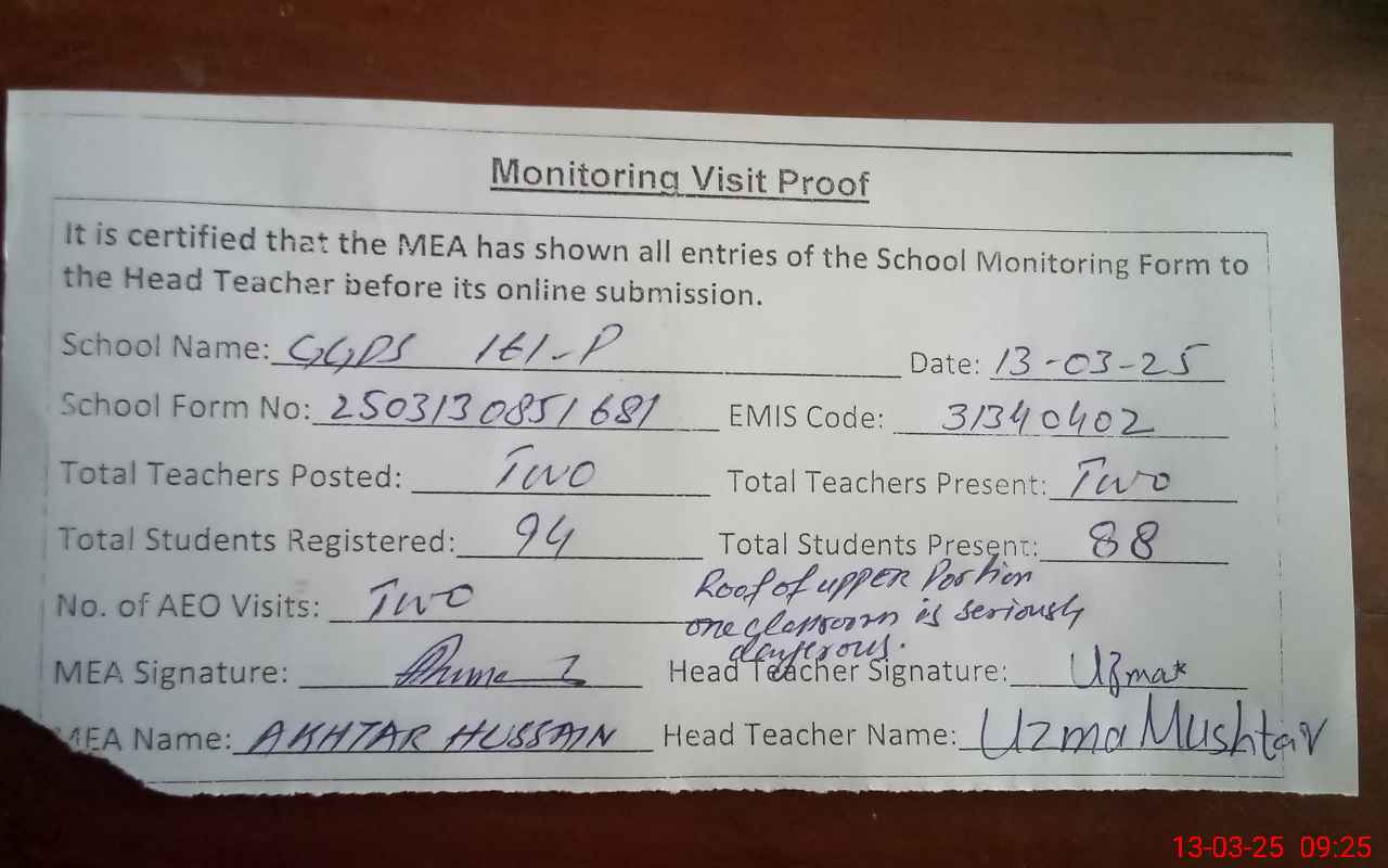| Certified that this School was Inspected by the Undersigned MEA/DMO Today and the Information Stated Above is as Per Record. | |||||