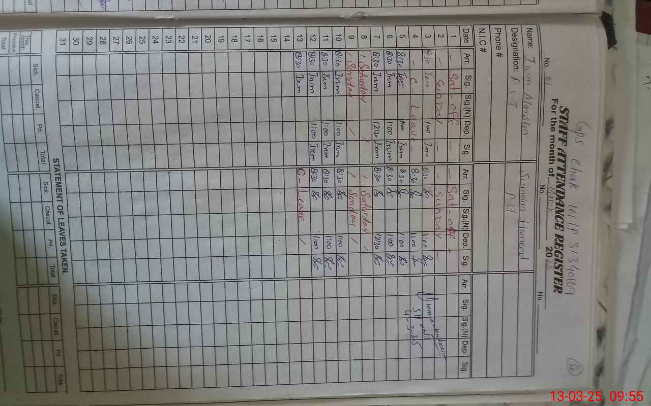 | Name: Ir**** Ma**** Designation: (School Headmaster's/Headmistress's) PST Phone/Cell Number: 03**** |