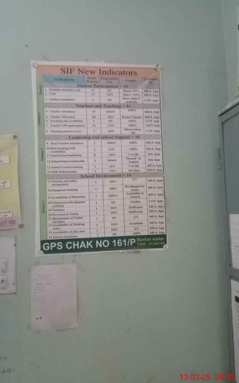 | EMIS Code: 31340169 | Name of School: GPS CHAK NO. 161/P | |||