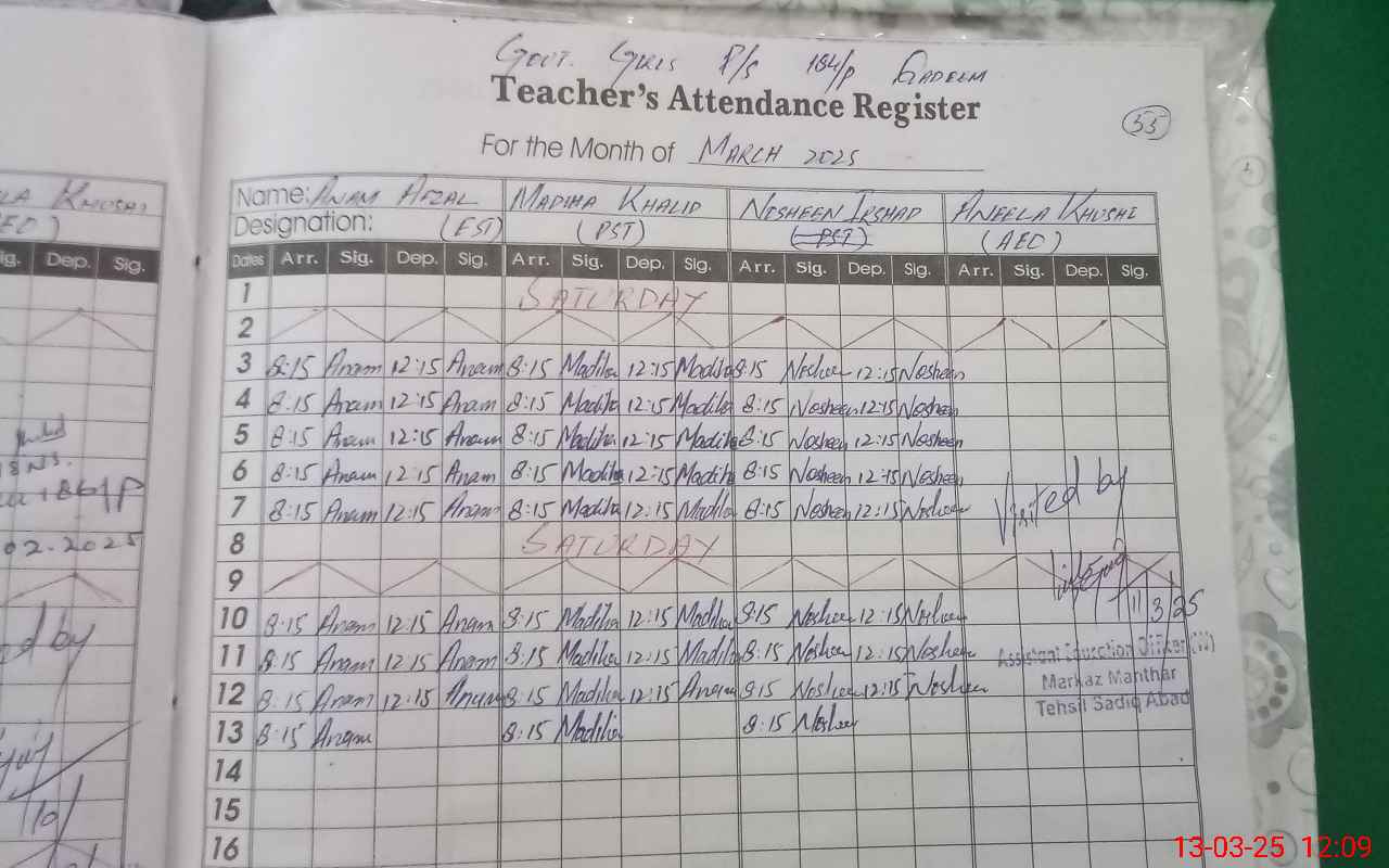 | District: RAHIMYAR KHAN | Tehsil: SADIQABAD | Markaz: MANTHAR SDK -FEMALE | Level: Primary | |