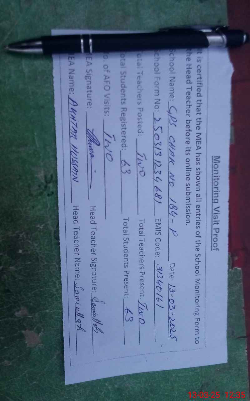 | EMIS Code: 31340161 | Name of School: GPS CHAK NO 184/P | |||