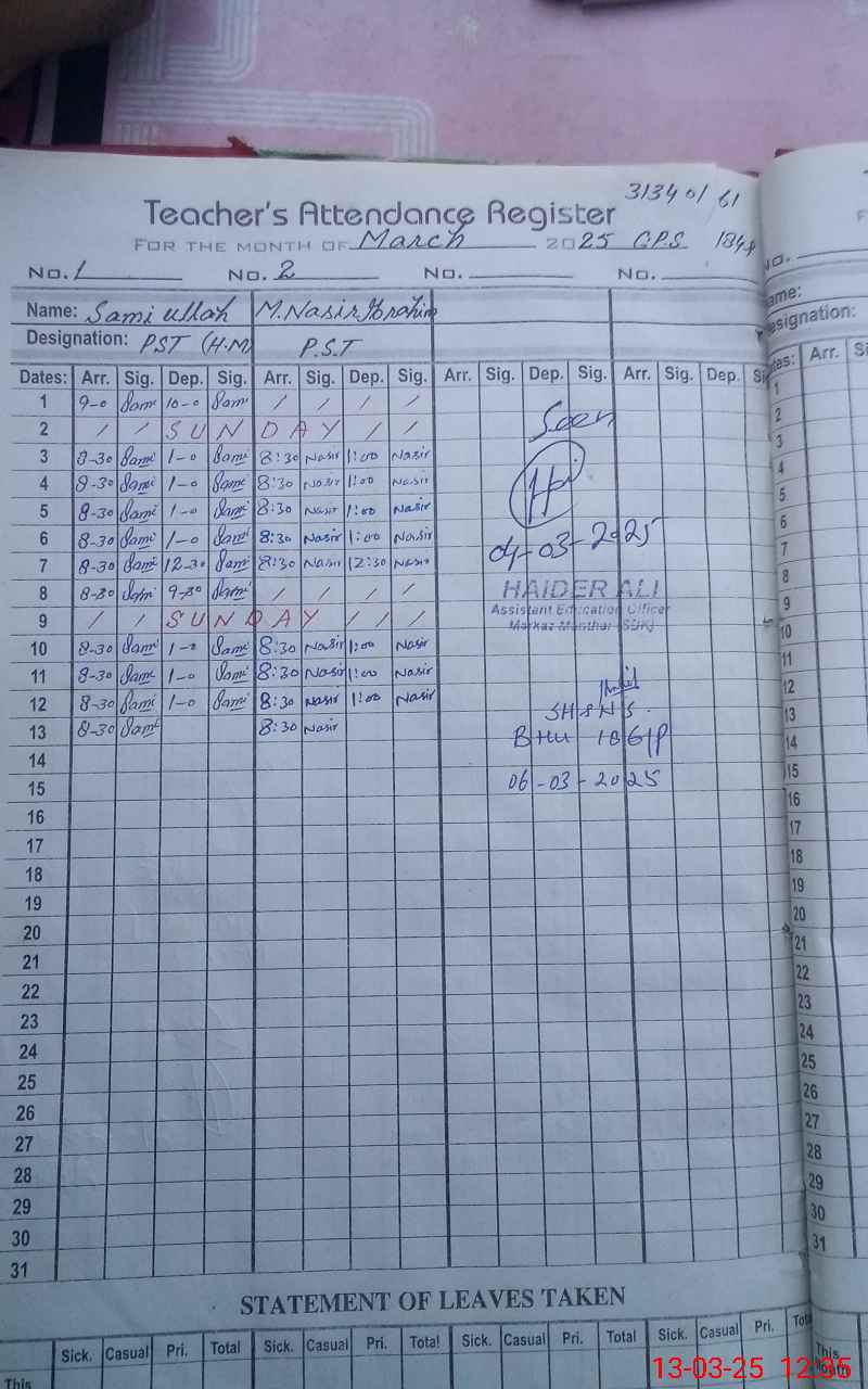 | Name: Sa**** Designation: (School Headmaster's/Headmistress's) PST Phone/Cell Number: 03**** |