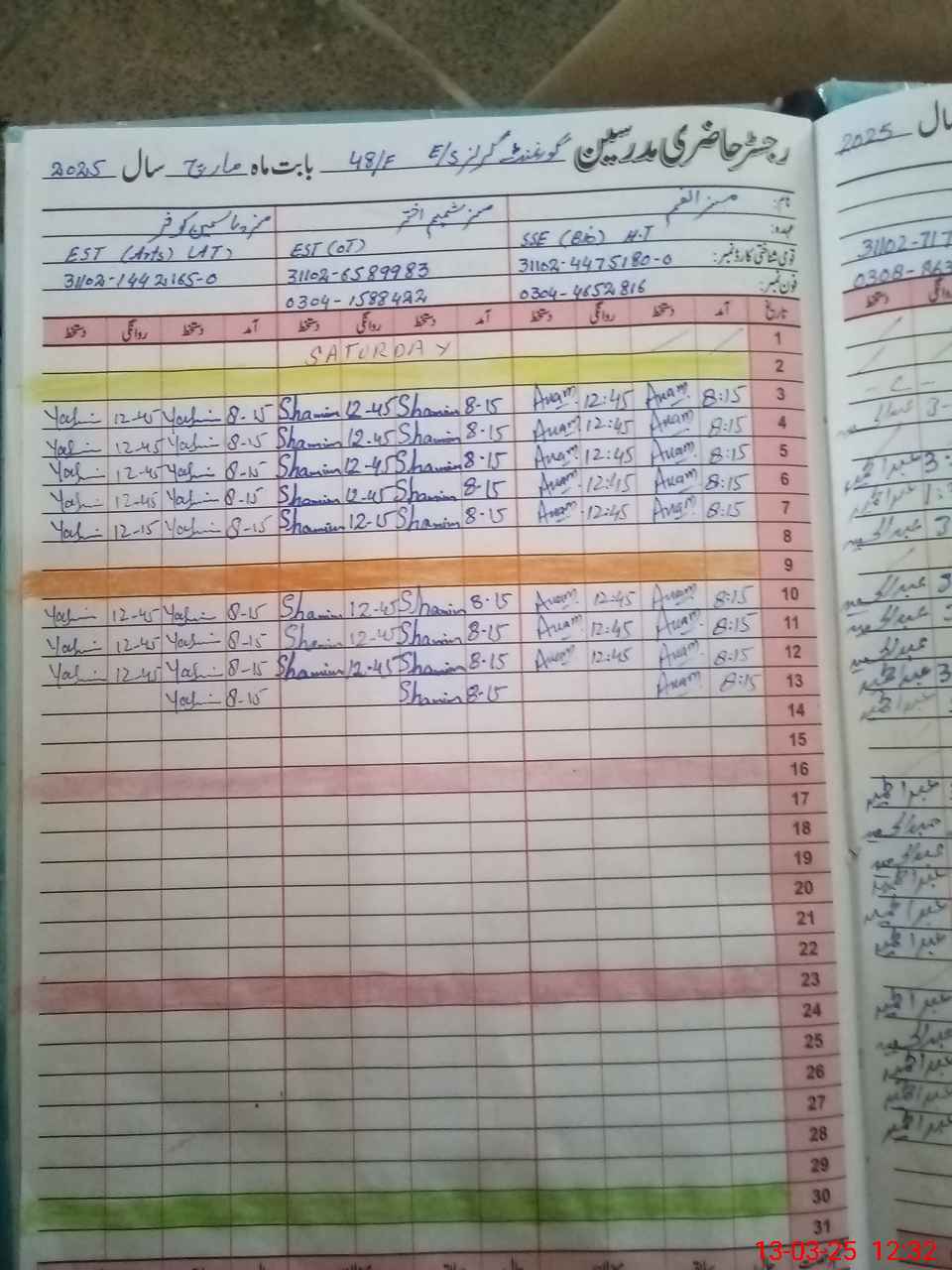 | Name: Sy**** Sh**** UnNi**** Designation: (School Headmaster's/Headmistress's) EST Phone/Cell Number: 03**** |