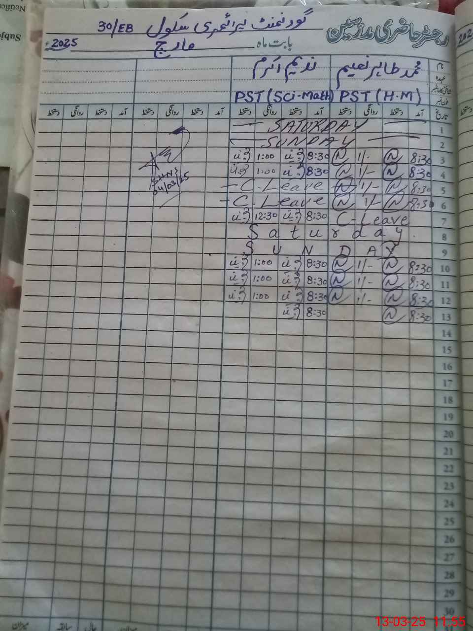 | Name: MU**** TA**** NA**** Designation: (School Headmaster's/Headmistress's) PST Phone/Cell Number: 03**** |