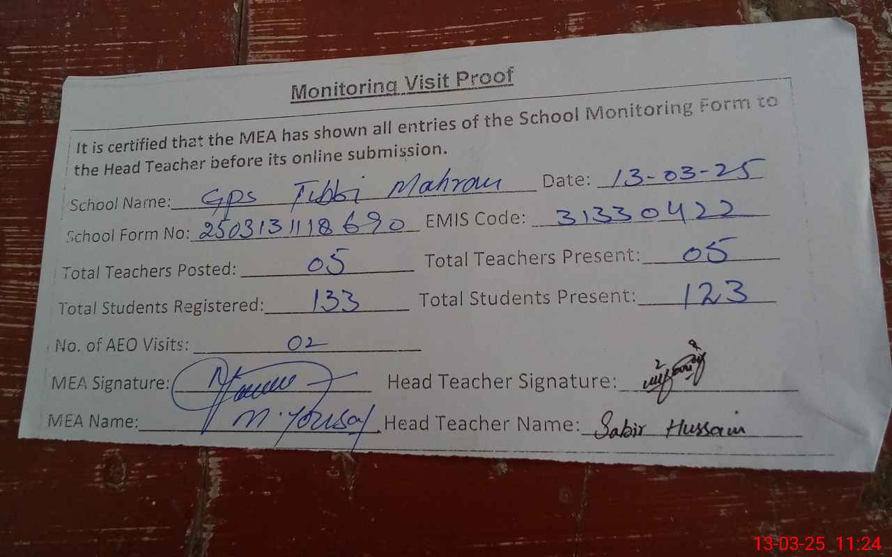 | EMIS Code: 31330422 | Name of School: GPS TIBBI MAHARAN | |||