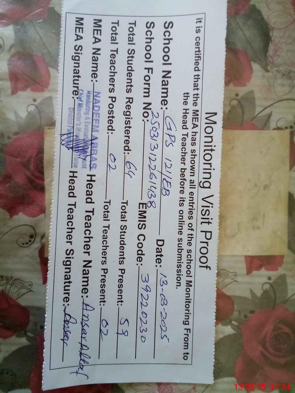 | EMIS Code: 39220230 | Name of School: GPS 121/EB | |||