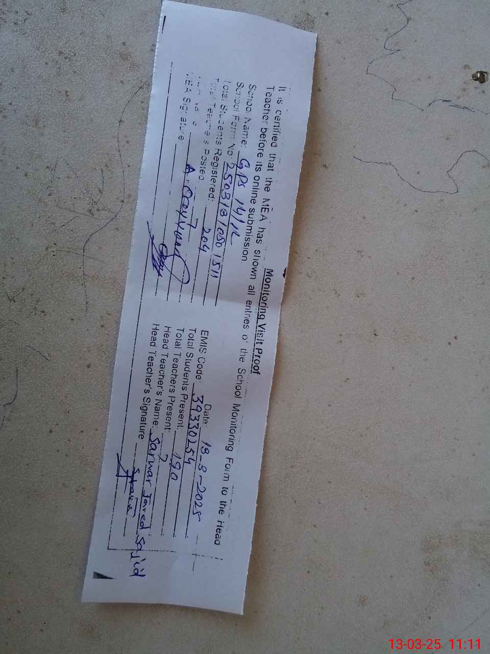 | EMIS Code: 39330254 | Name of School: GPS CHAK NO 14/1L | |||