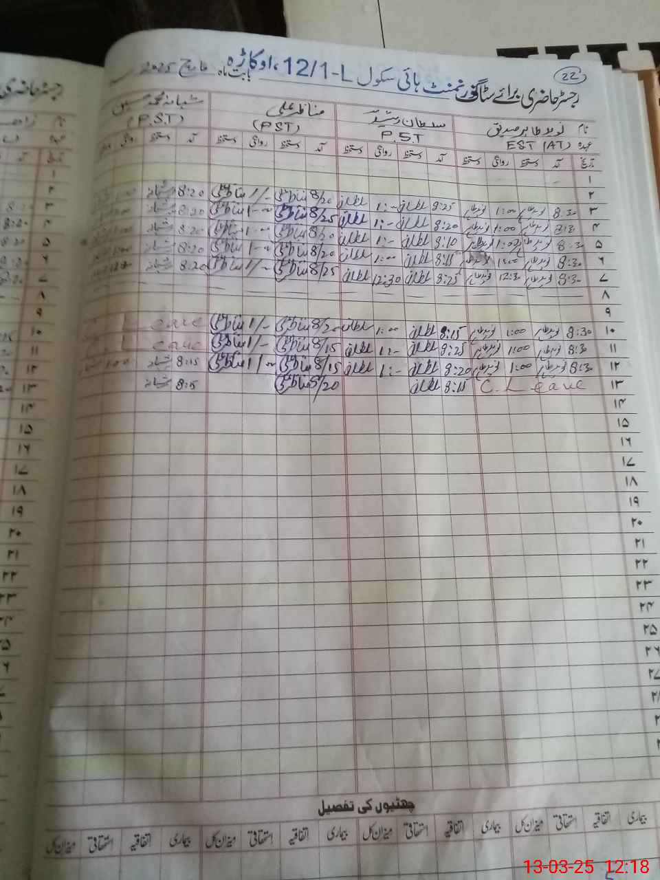| CNIC | Full Name | Designation | R/C | Absence During Last Calender Month |