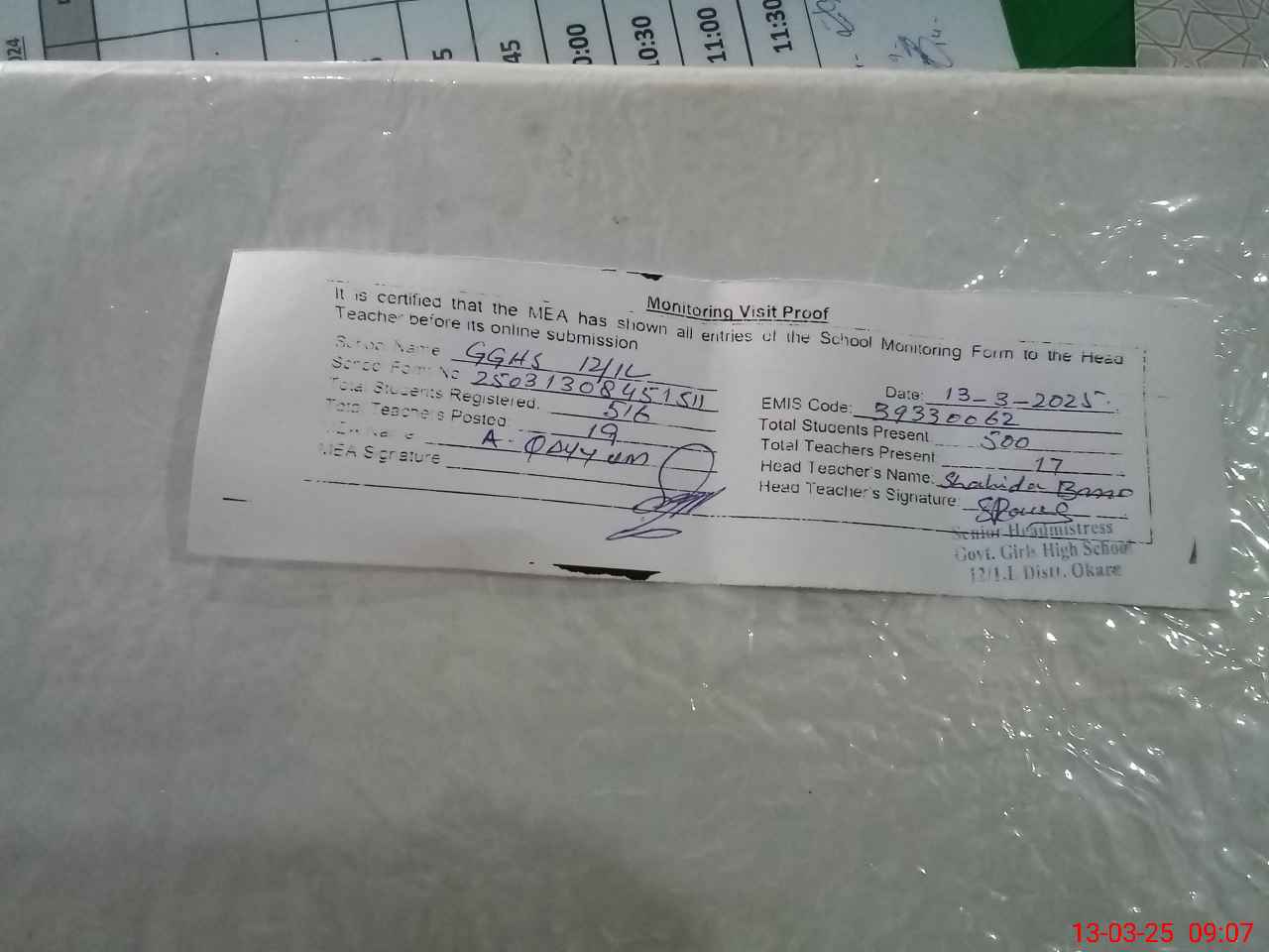 | EMIS Code: 39330062 | Name of School: GGHS CHAK NO.12/1-L | |||