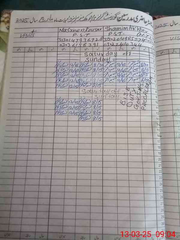 | 31**** | Sh**** Ak**** | PST | Regular | 0 | 0 | 0 | 0 | 0 | 0 | 0 | 0 | 0 | Exam Duty |