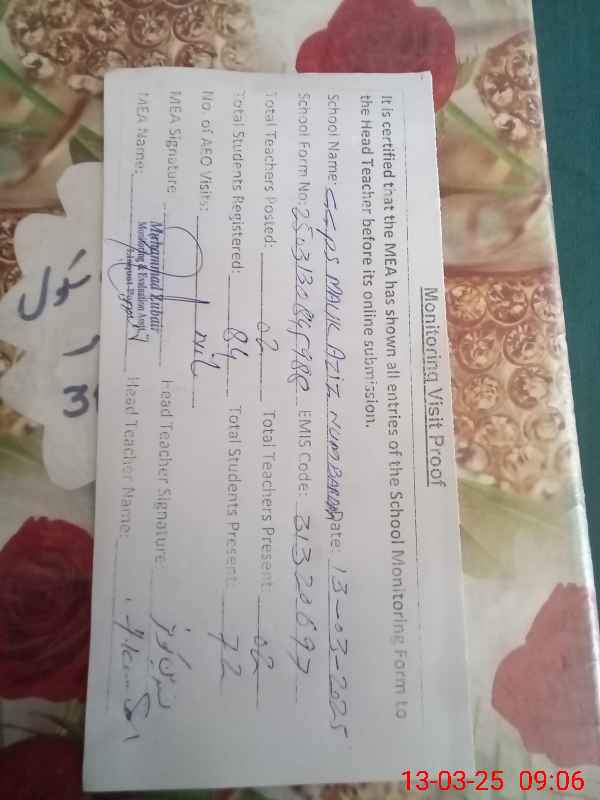 | EMIS Code: 31320697 | Name of School: GGPS MALIK AZIZ NUMBERDAR | |||