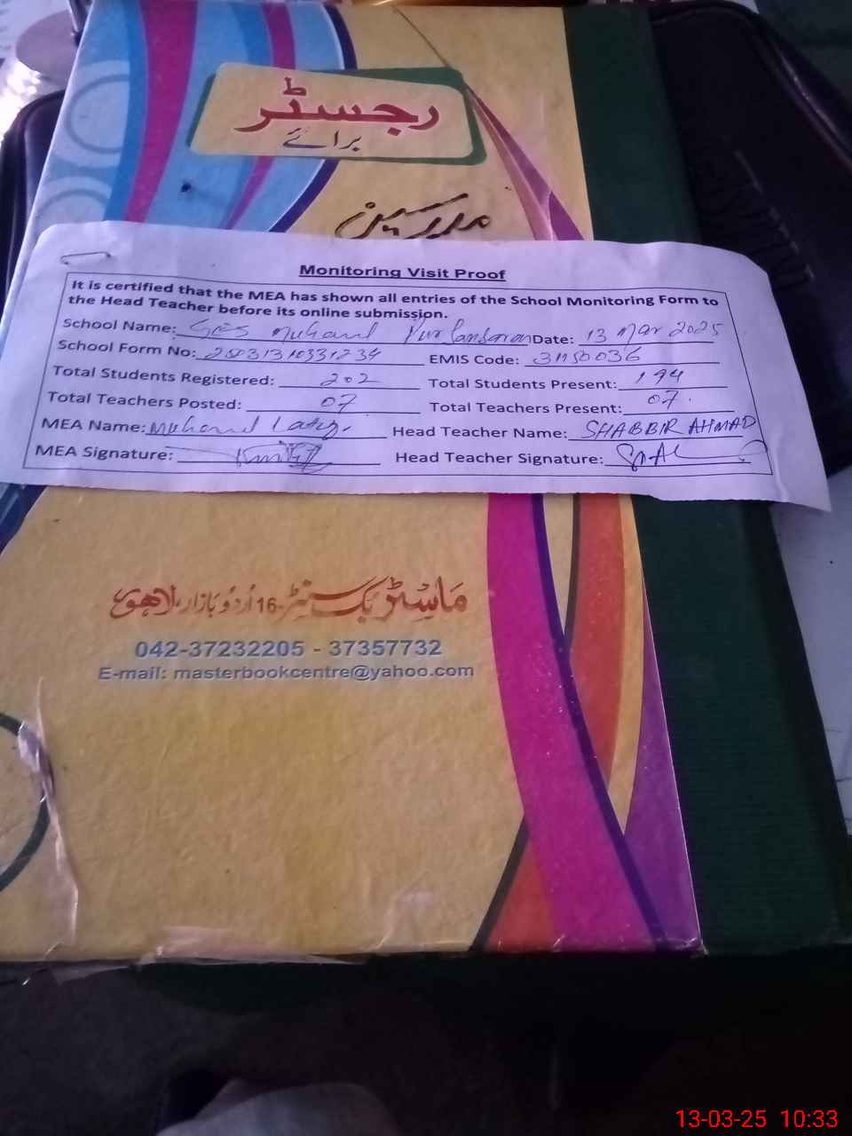 | EMIS Code: 31150036 | Name of School: GES MUHAMMAD PUR SANSARAN | |||
